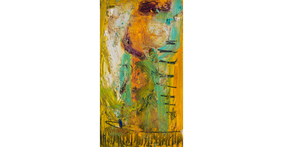 The Alchemist, 14x8, oil pigment stick on panel